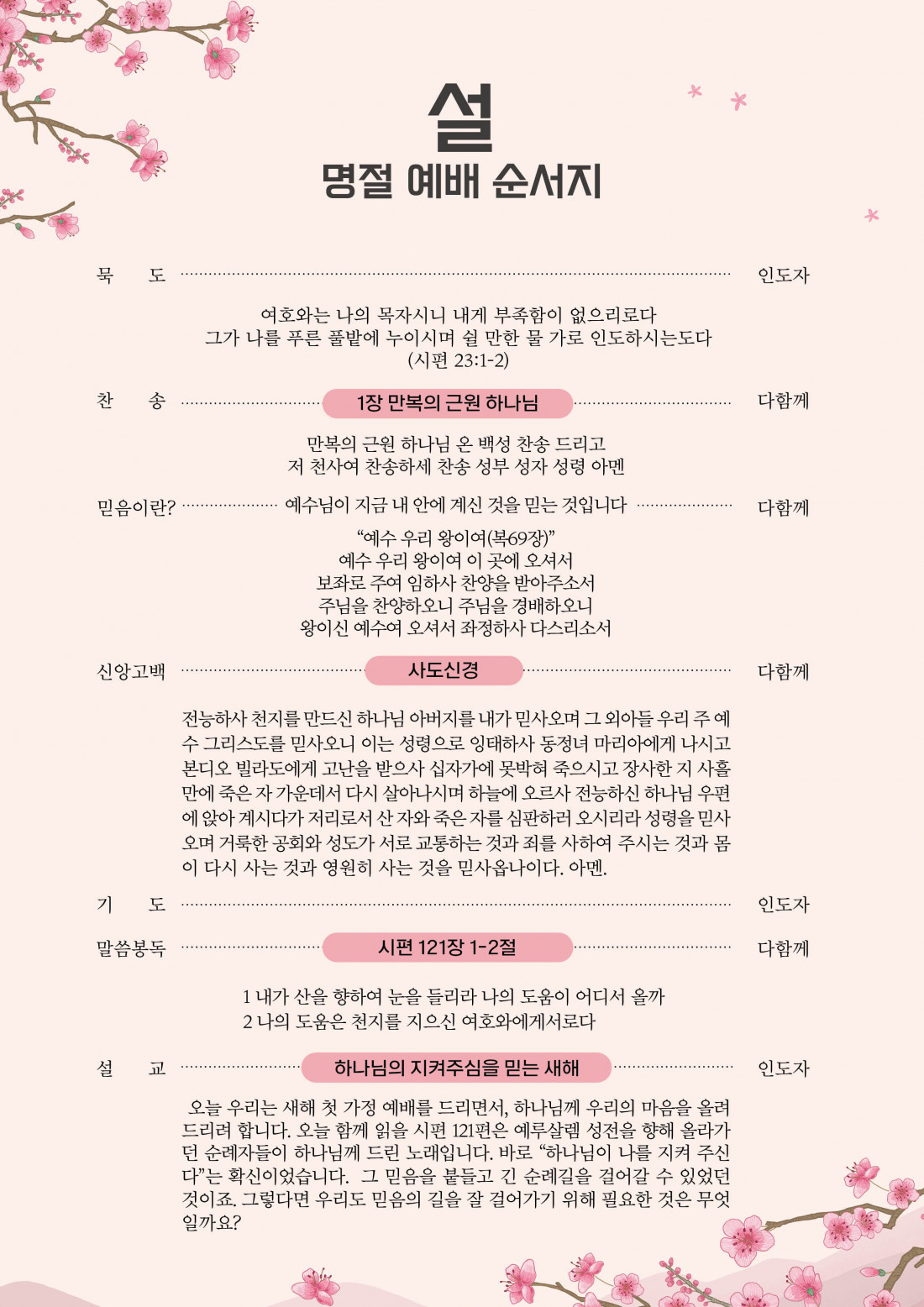 2026 설 명절 예배 순서지